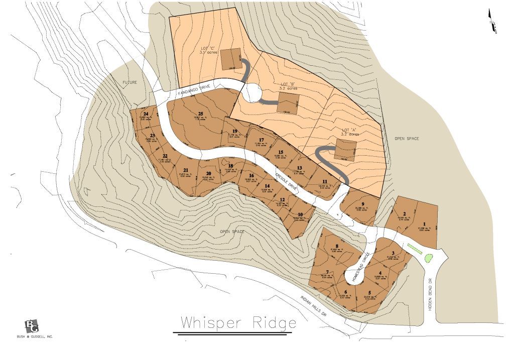 This site will detail out the undeveloped remaining land in the Whisper Ridge Development. There are currently 25 completly developed lots at Whisper Ridge with a potential of at least 40 more lots that can be developed in the remaining phases. The remaining land is available to be customized to desired sizes and can accomidate 3+ acre sized estate lots.